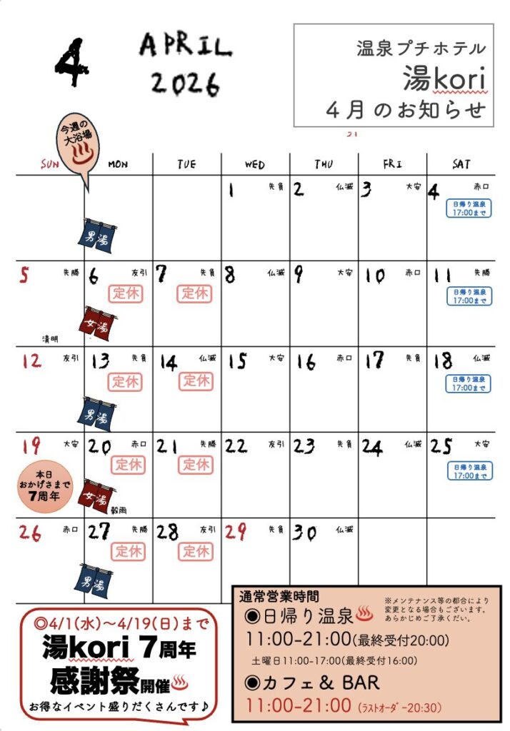 いつも温泉プチホテル湯koriをご利用いただき、誠にありがとうございます✨