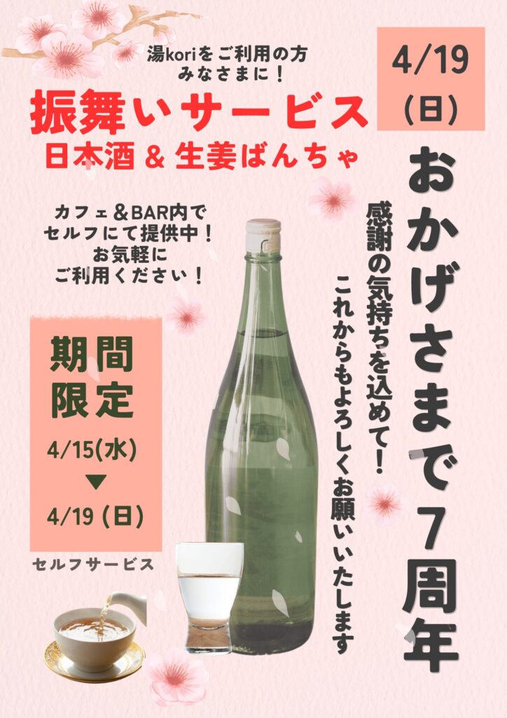 おかげさまで湯koriは4/19(日)で7周年を迎えます!