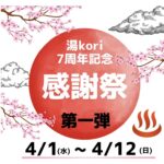 いつも温泉プチホテル湯koriをご利用いただきありがとうございます😊おかげさまで湯koriは4/19(日)で7周年を迎えます✨ 感謝の気持ちを込めて、…